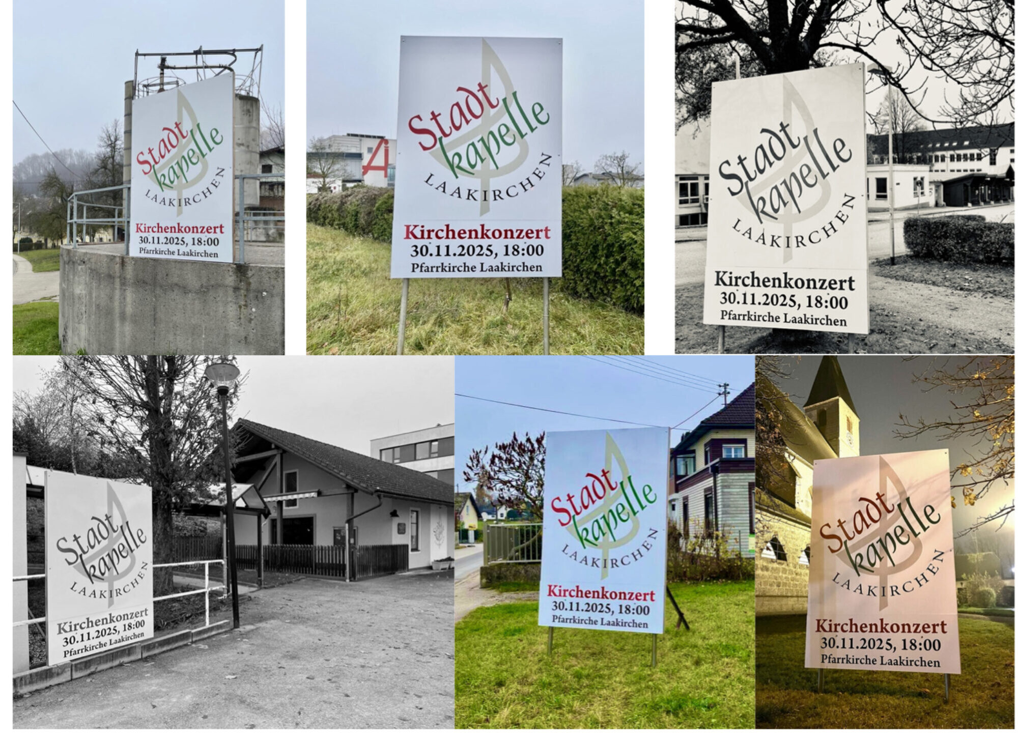 Die Stadtkapelle Laakirchen lädt herzlich zum traditionellen Kirchenkonzert am 1. Adventsonntag, 30. November 2025, um 18:00 Uhr in der Pfarrkirche Laakirchen ein.